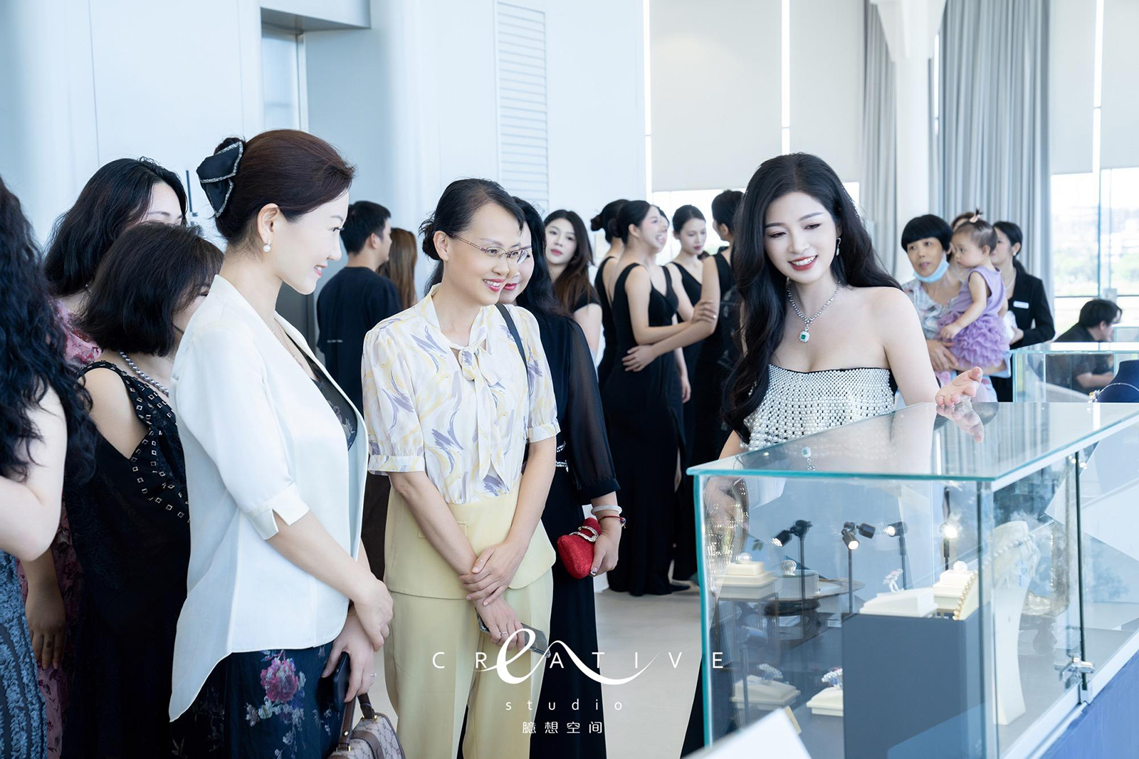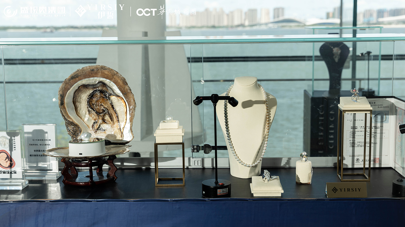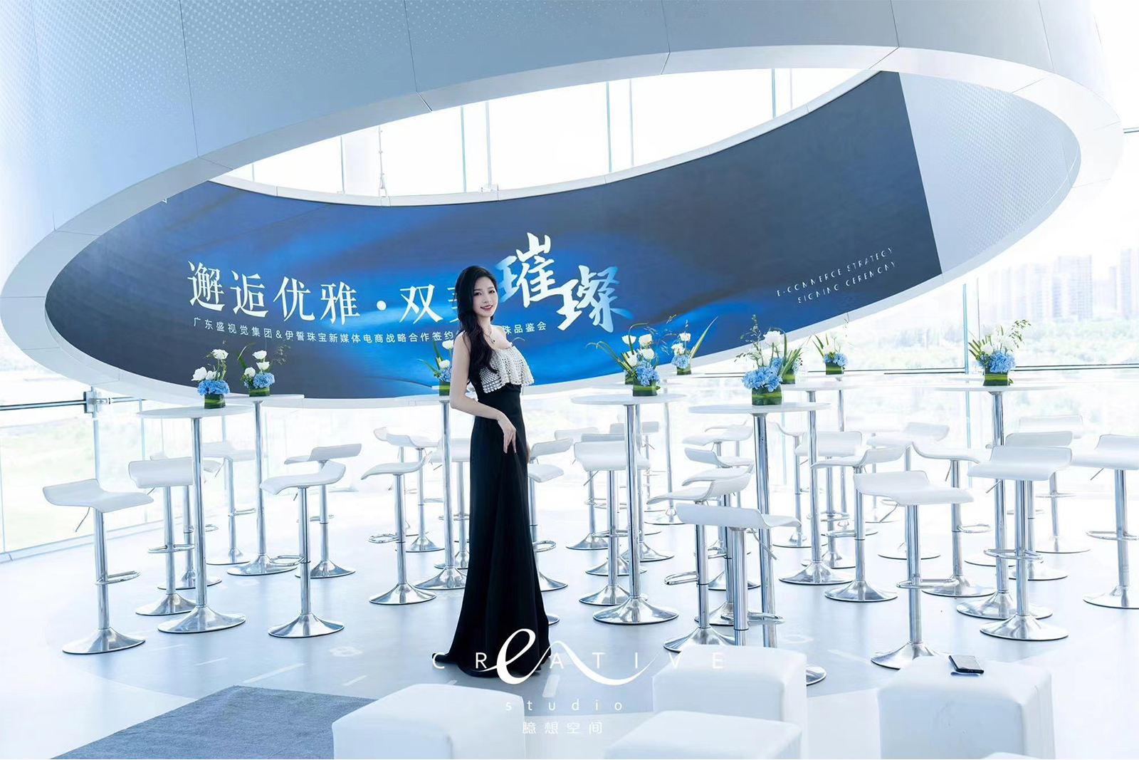 下午三点整,随着悠扬的爵士音乐响起,签约仪式在庄重而温馨的氛围中拉开序幕。会场内,装饰以高雅的白色与神秘沉稳的深蓝色为主色调,既体现了商务合作的正式与庄重,又巧妙地融入了珠宝展览的奢华元素。干净的落地玻璃,广阔的海景,为仪式增加了大气磅礴的体验